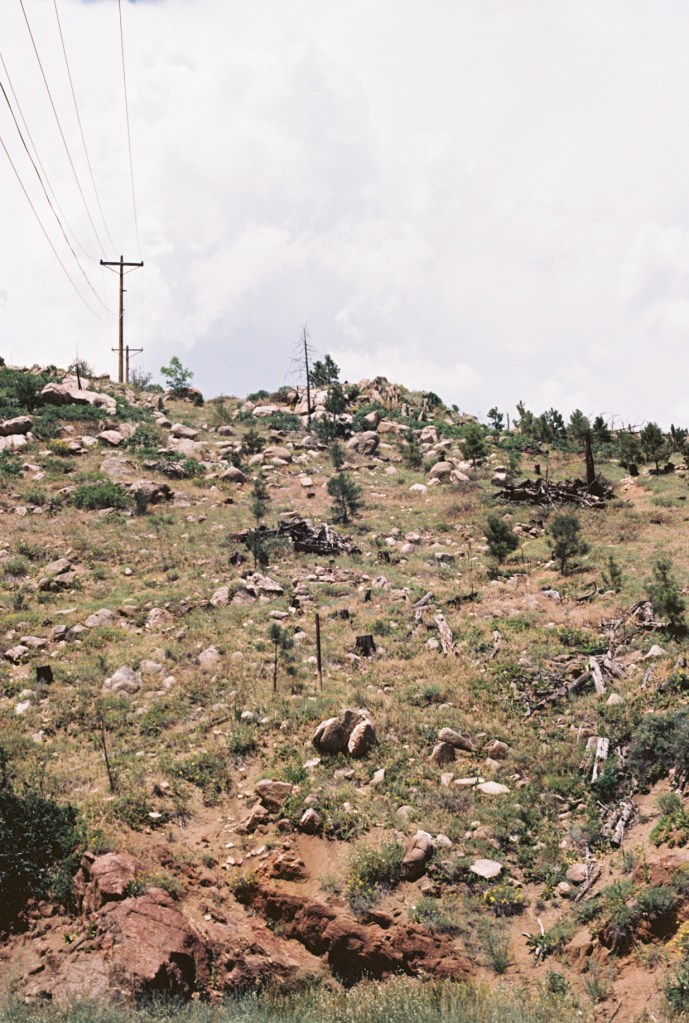 Ektar 100 is one of my favorite summer film stocks due to its high saturation when slightly overexposed, as well as relatively low iso (allowing shots to turn out okay, even in the blistering Colorado heat). Ektar is also a super common film stock, with few frills (ie. it isn’t a super experimental film stock that heavily impacts the final print like some other –more crazy– boutique film stocks). Because of the relatively easy-going, beautiful nature of Ektar, as well as its interesting reactivity to over-exposures, I spent a few afternoons attempting to take some more experimental shots on my OM-1 camera with a 50mm lens and polarizing filter. Most of these images were taken near Wall-street in Four Mile Canyon, though some were also taken off of Valmont in Boulder. All of these images are raw as well.